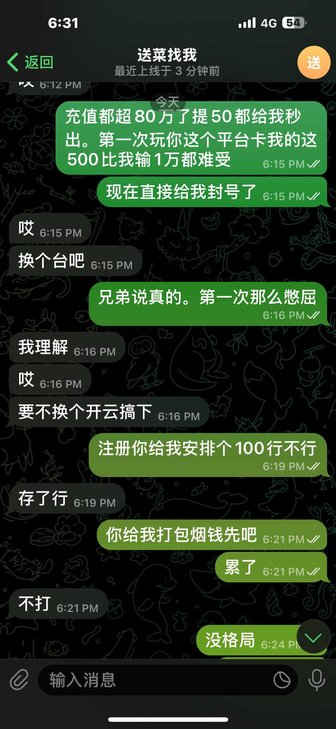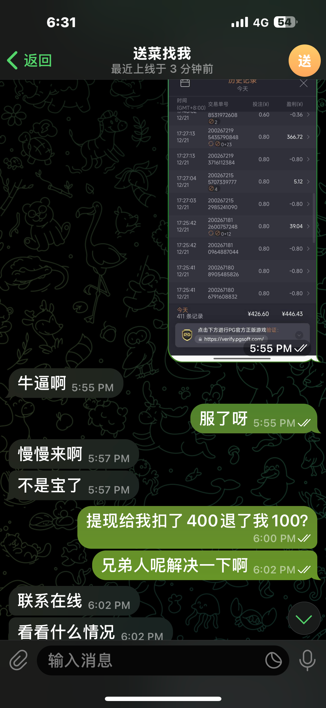 踏马的。玩 2 到 4 块的赏金大对决输了一万,最高 300 倍。还就给了两次,进免费就是二三十倍,无限杀,跑麻一麻二还有点回头钱,