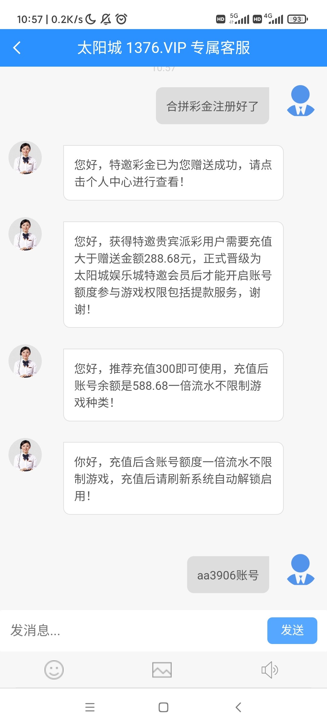 我一开始冲500输了后面又冲200打了4000流水才打回来提现的时候流水这不用想是够的直接给我退回让我打现在余额3倍流水去电子才给提现这不是明摆着黑吗现在输完了狗客服消息都不回真想骂死他全家哦 各位千万别冲这狗平台