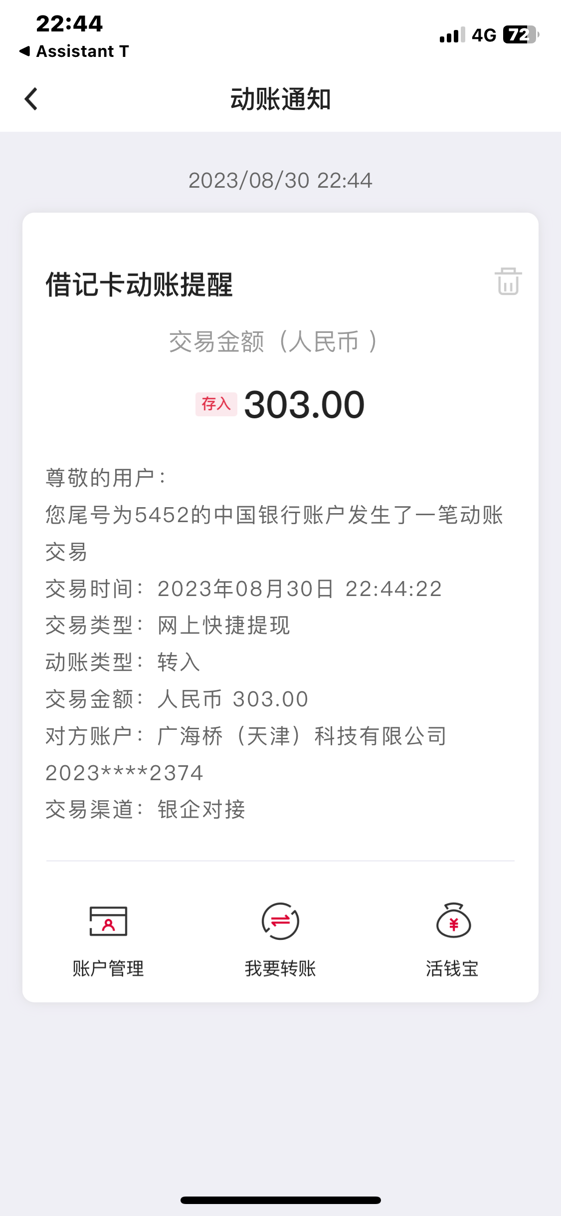 卧槽 提到账了 10分钟左右就到账