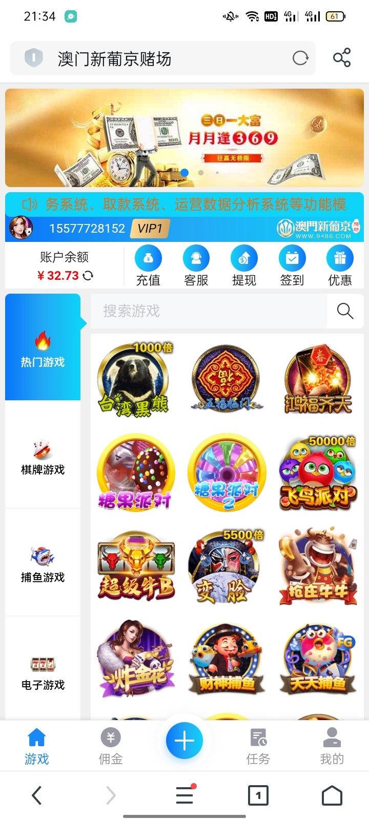 新用户注册秒18注意看下方图片规则 ,无游戏限制,五倍流水,只能提100,多的要充值,我的建议白嫖100就行,手机号多的无限撸。希望老哥们多多分享本站,叫上朋友一起撸干翻狗庄