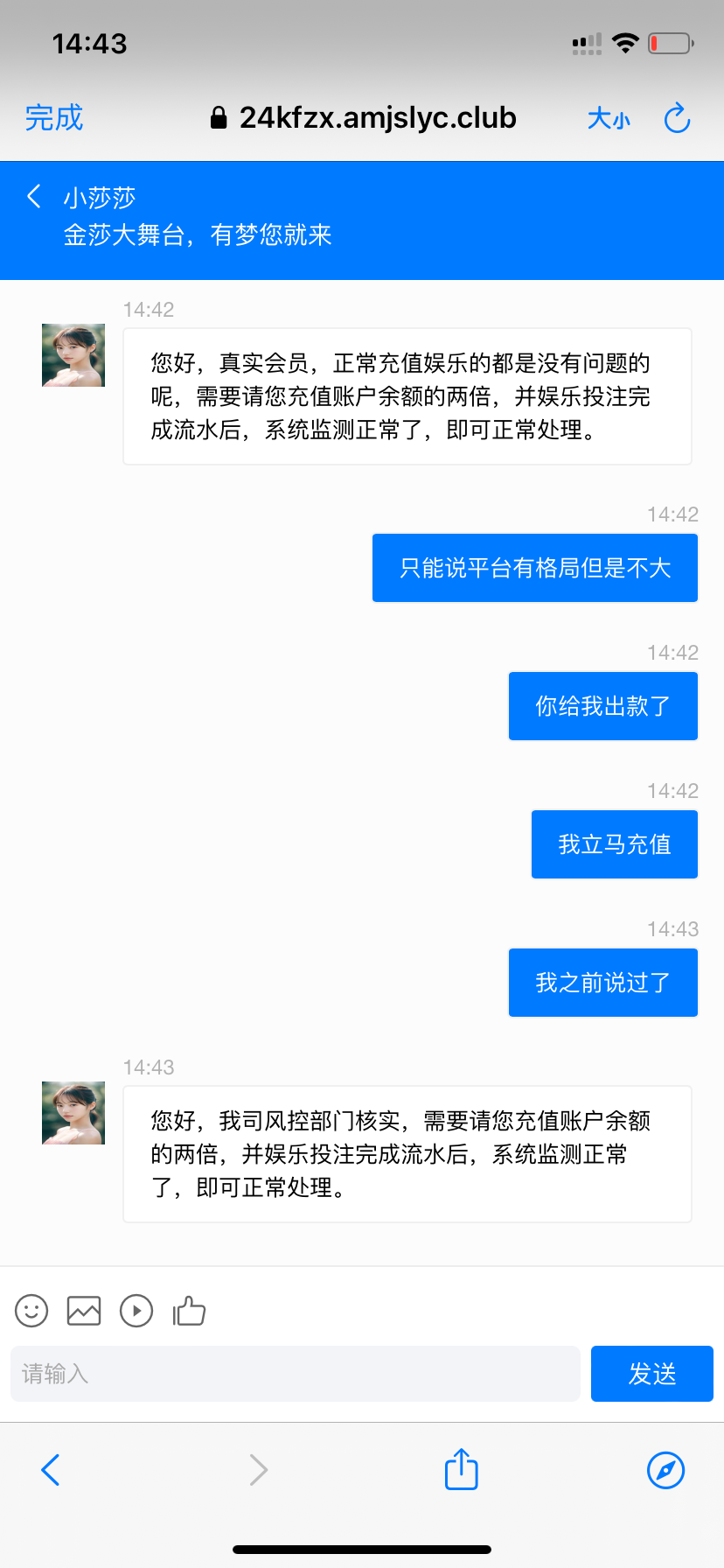 尘落 对,狗庄又不是你爹妈一直给你送钱,你都出款成功两次了,想继续嫖就充一次也很正常。这次不支持你这个垃圾。