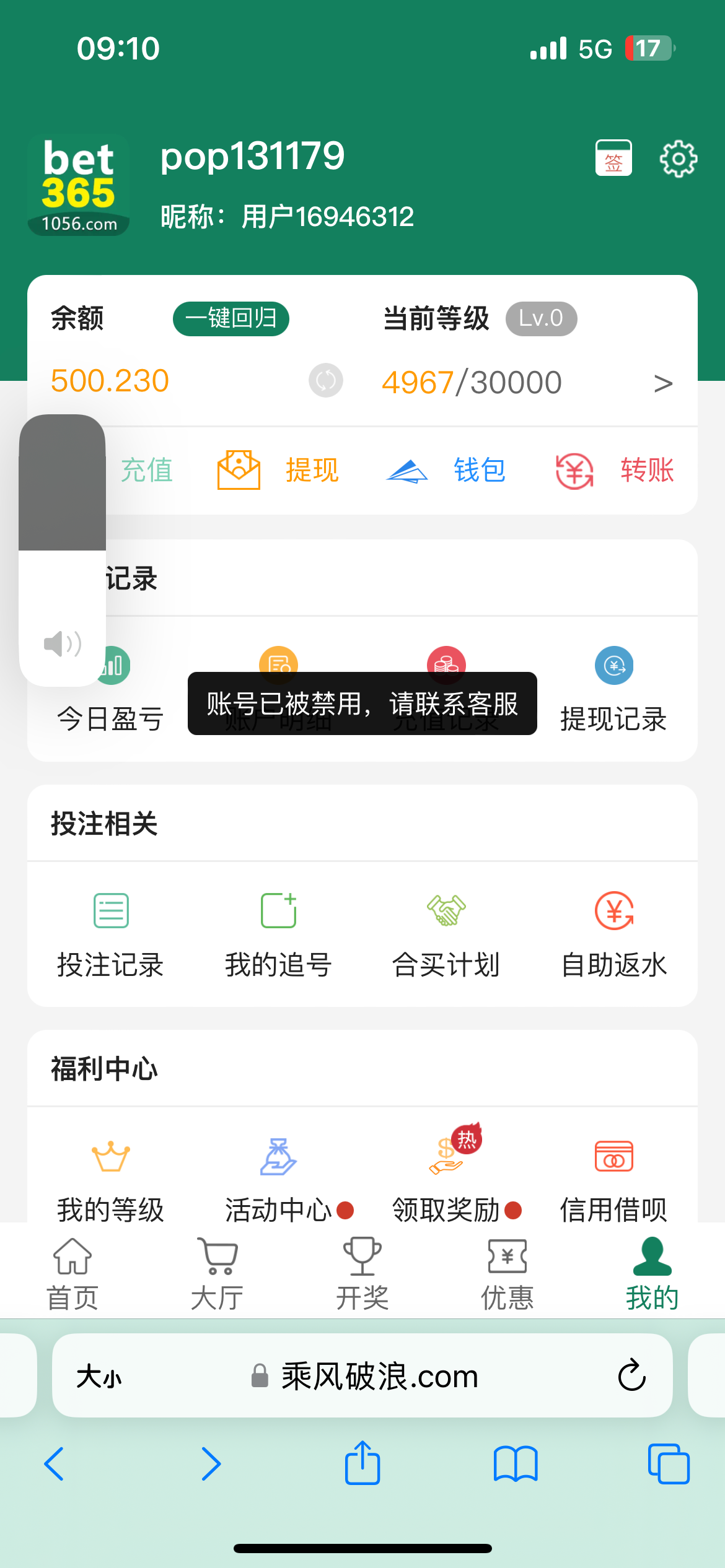 bet出200,封号了