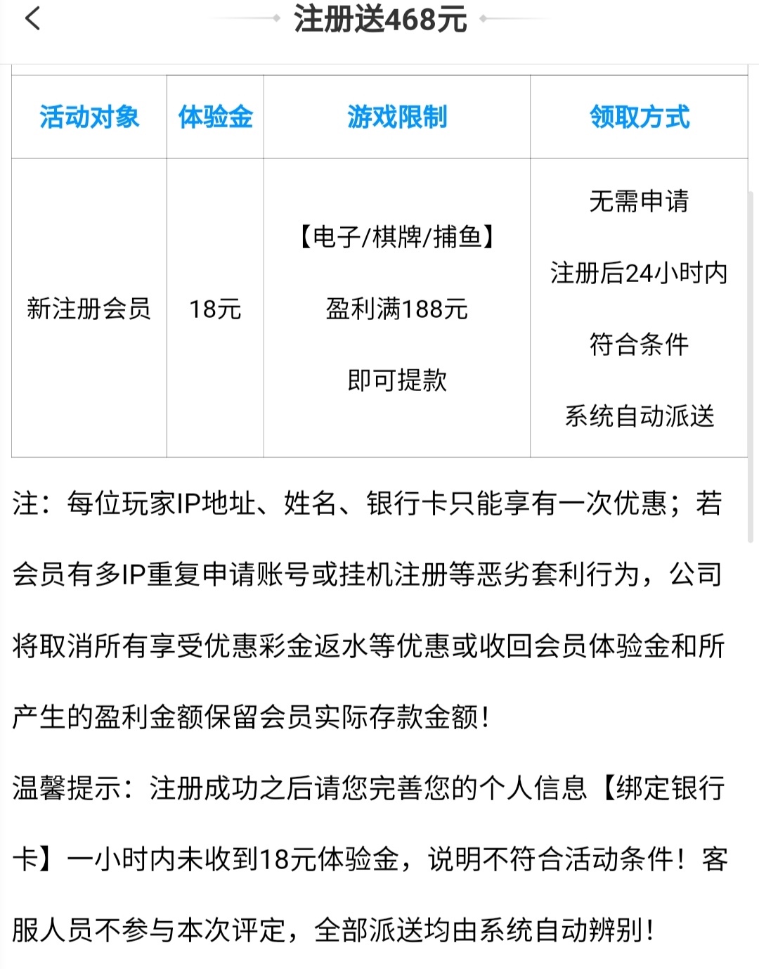 新用户注册绑卡完善资料一个小时左右送18/188提现,没送就是不符合