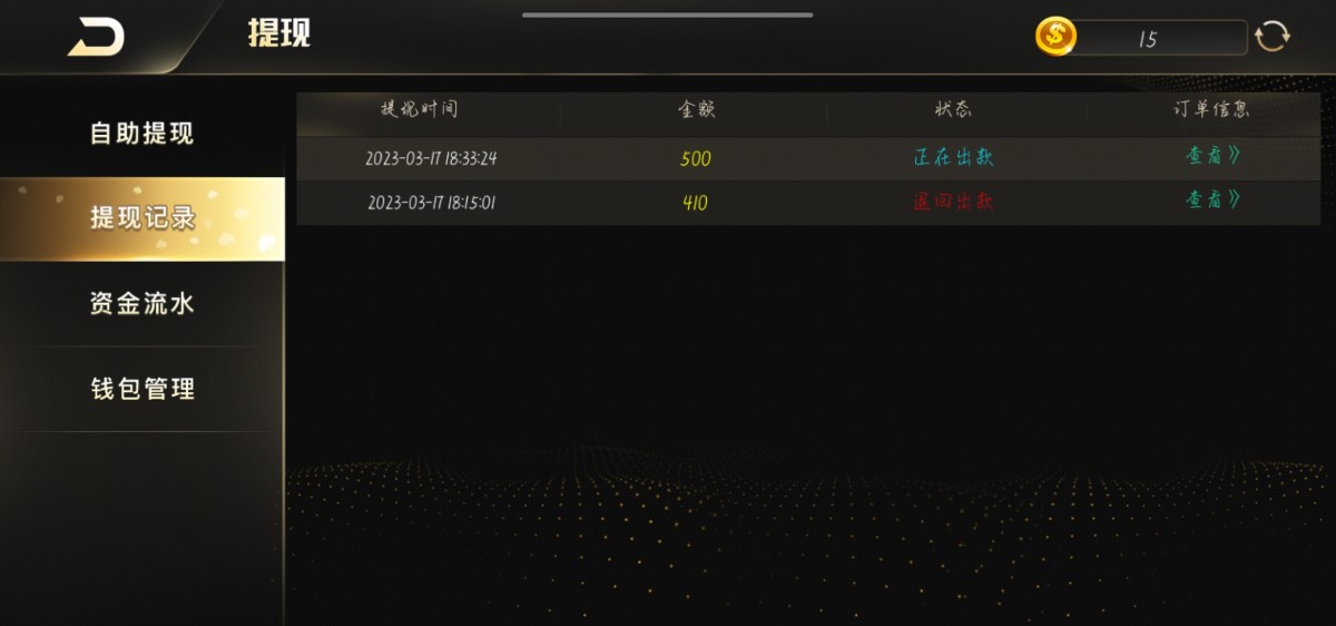 提了二百看到不到