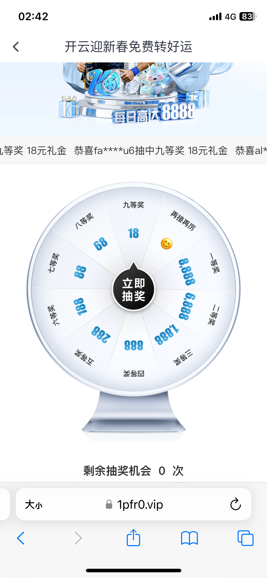 开云有抽奖活动,没充值也有1次机会