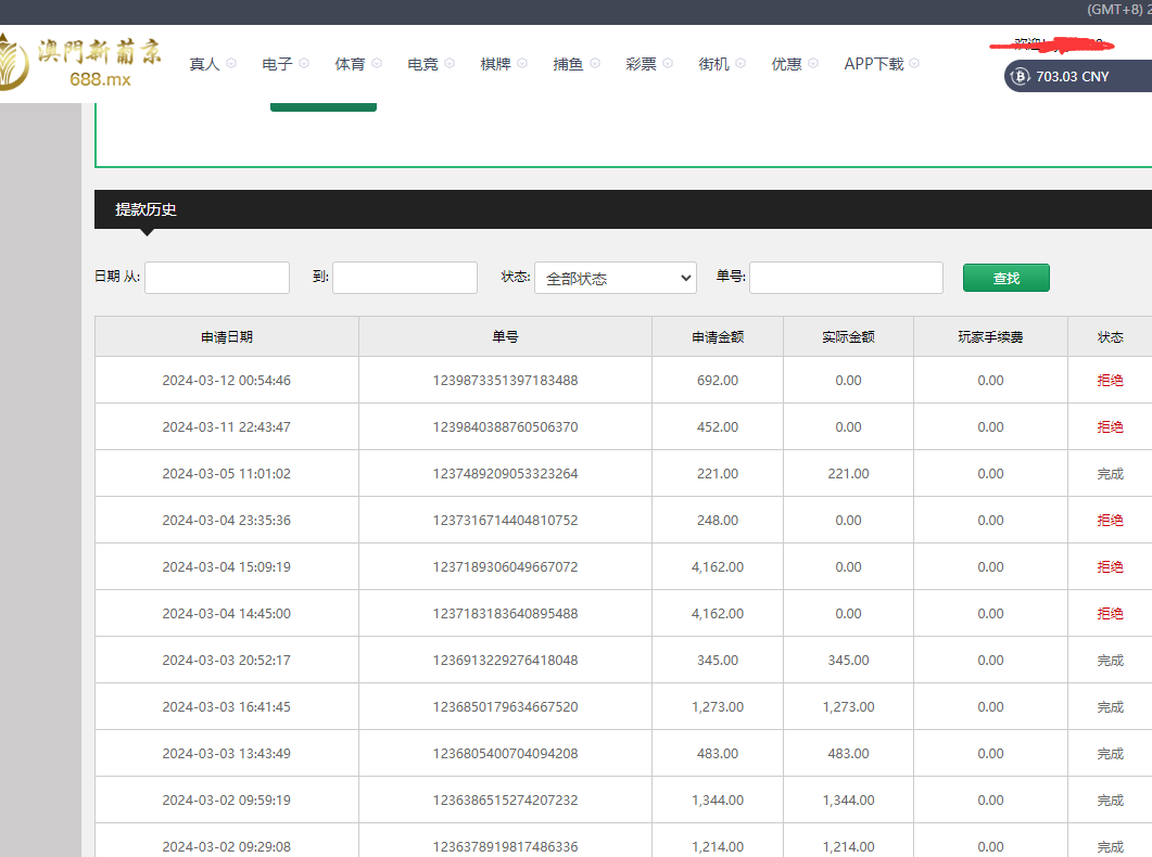 以前天天打电话。耗不住他们的热情,以为有实力 便在他家玩了,两月输了一万多进去,最近存款1300。。出款4100。拒绝出款,客服意思是要存相同才可以取款,不信他的结果又接着玩输光。返水也不给提,找客服解决结果出了200多。以为没事了,过了几天又存款出款452。又拒绝出款,让存款激活帐号,相信他们信用,必竟存了上百次款。打了几十万流水,问清楚激活帐号只需要存款200多。存了后说还要转移资金还得存款,意义何为大家应该懂咯,我也白相信这公司啦,特此告知方大博彩狗。认清这家公司的嘴脸。