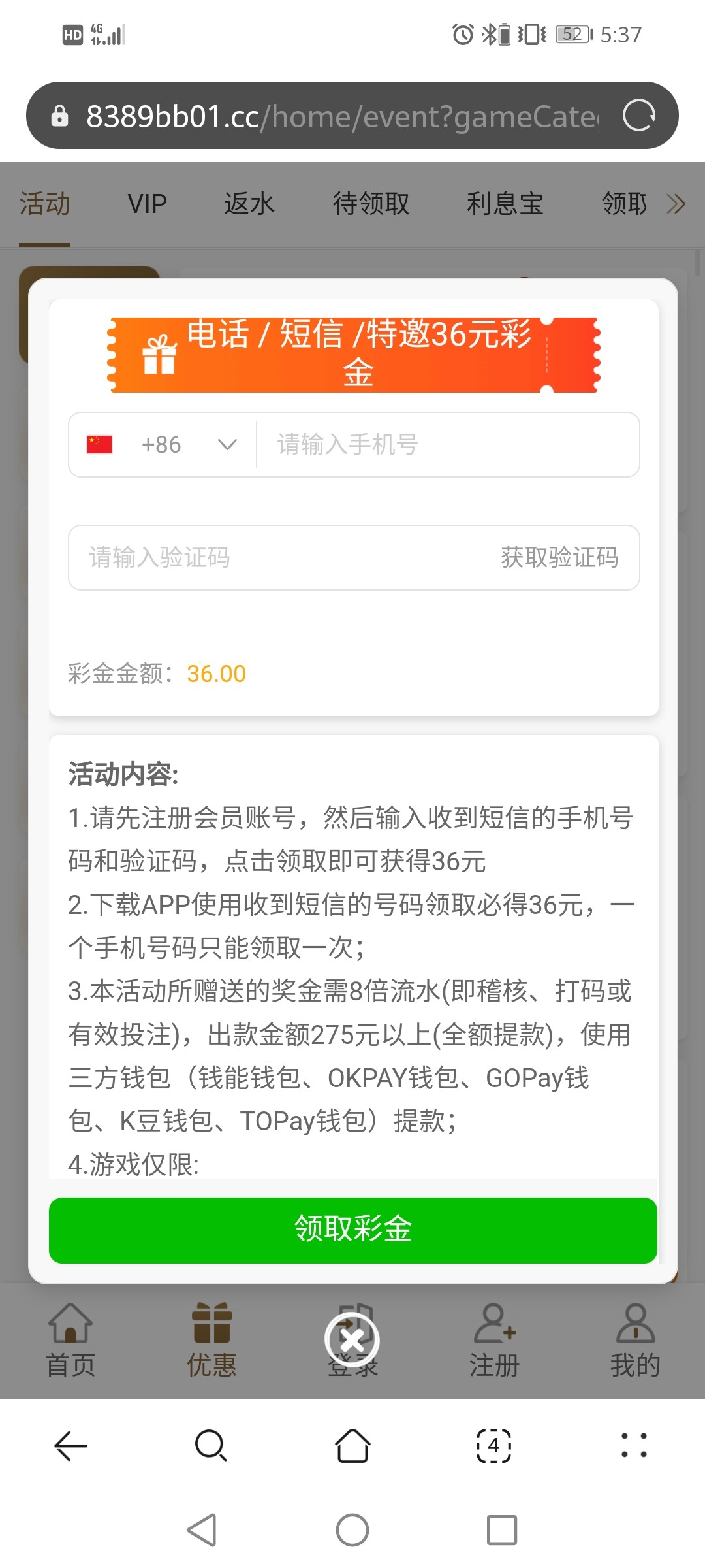 注册到优惠验证手机号秒36,新特邀彩金