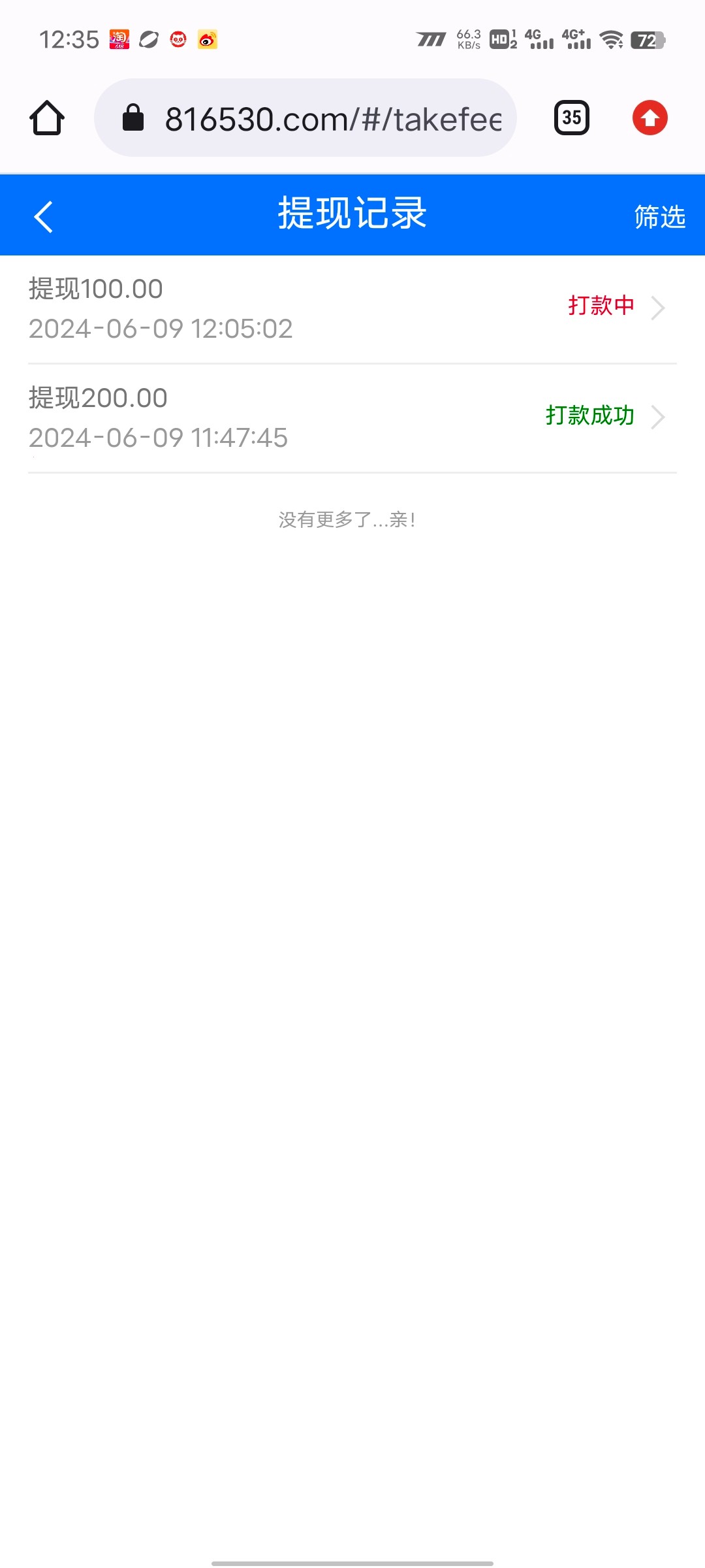 白嫖100已到账