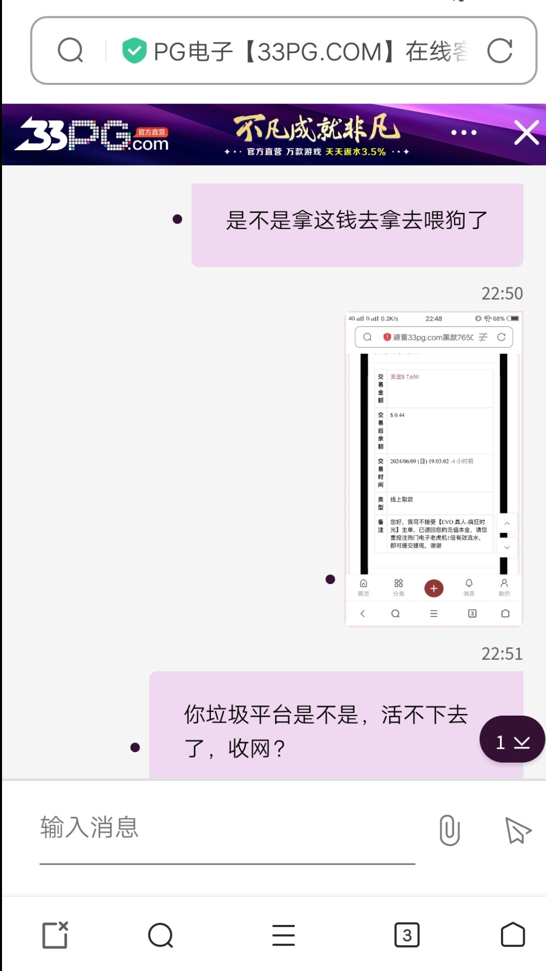 本站声明 1、本帖标题:避雷33pg.com黑款7650元