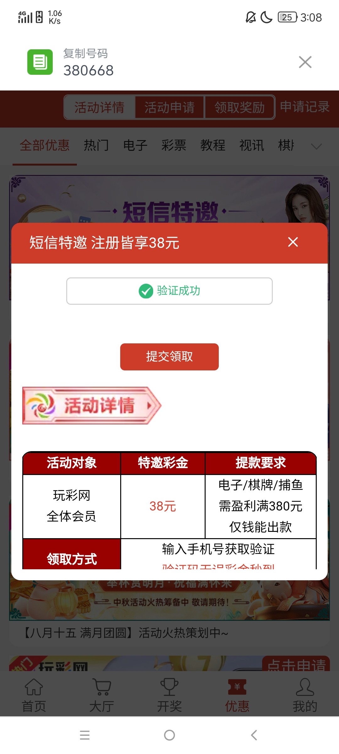 新用户注册绑卡,优惠自助特邀申请38彩金,满380提现,出款自测!