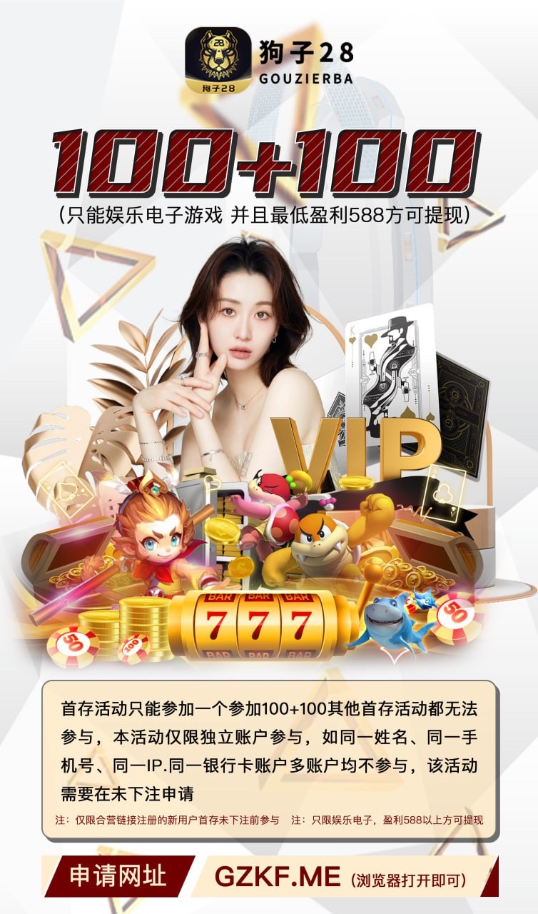 活动:新用户首存100+100(只能娱乐电子游戏,井且满足10倍流水即可无限制提款或者最低提款588元)首存活动只能参加一个参加100+100其他首存活动都无法参与,本活动仅限独立账户参与,如同一姓名、同一手机号、同一IP.同一银行卡账户多账户均不参与,该活动需要在未下注前申请