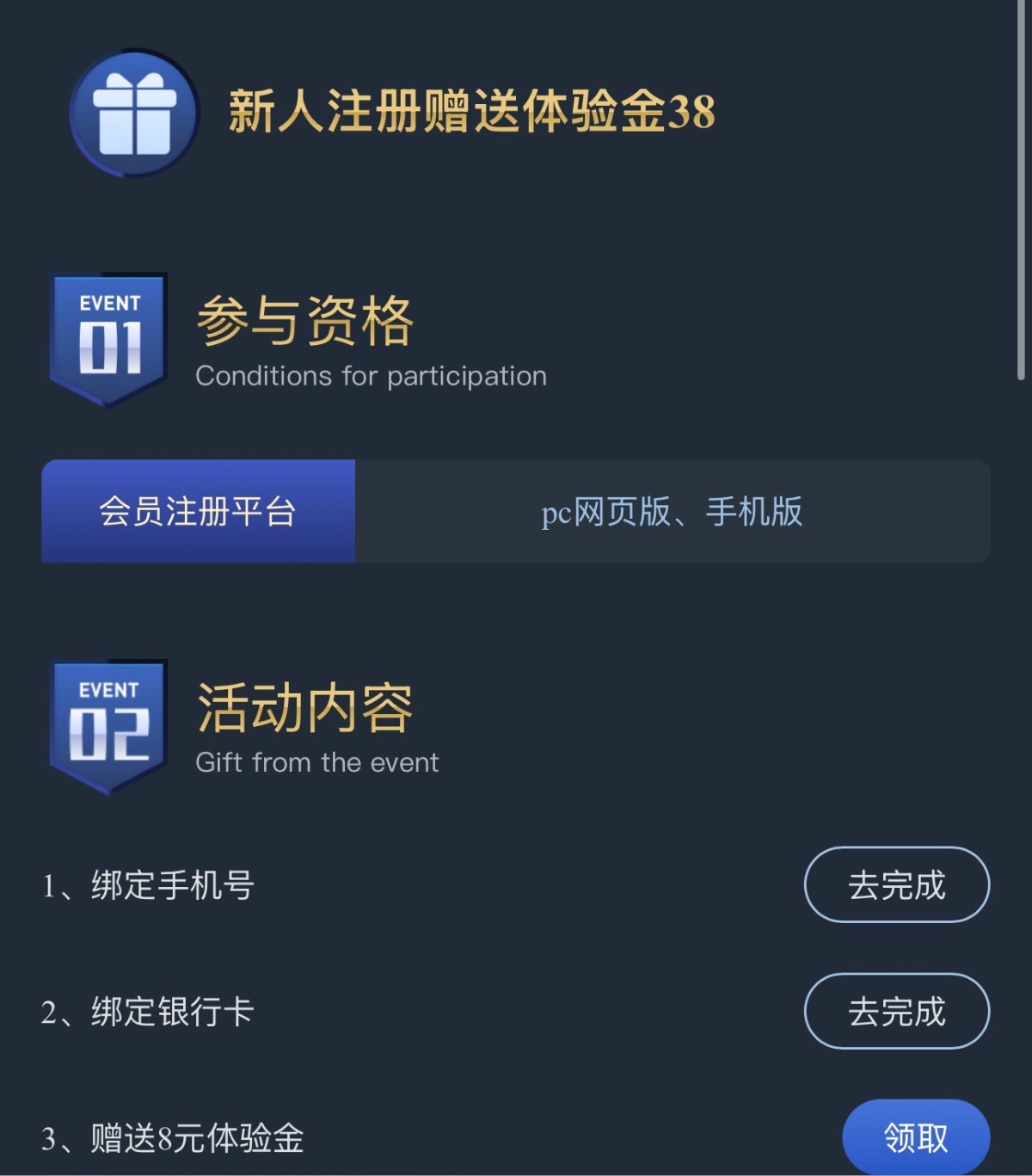 新用户注册绑定手机银行卡优惠-新人福利领取秒8/100提现