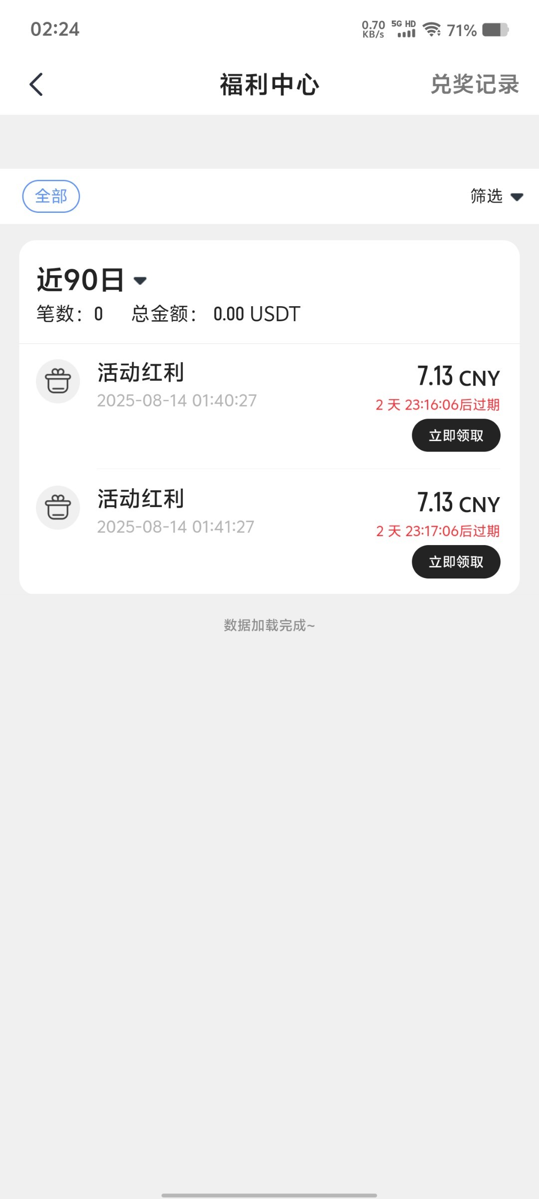 手机号和银行卡任务奖励是在福利中心领取