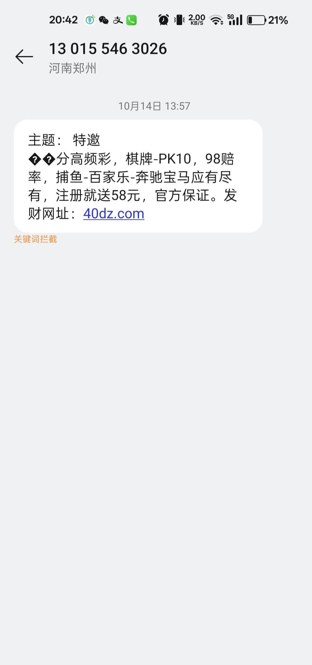 今天看拦截信息看到的,注册去微聊自动加了一个客服,说送58彩金,他回了一句发手机号和短信截图,注册送8体验金。然后就给了8块!我给他发了他秒回我,估计是不查!出款未知,想碰的就去碰碰,最好自己做个图去试试!