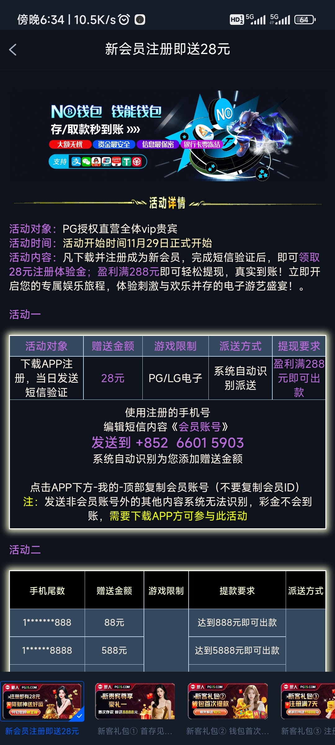 【PG35】发短信送28