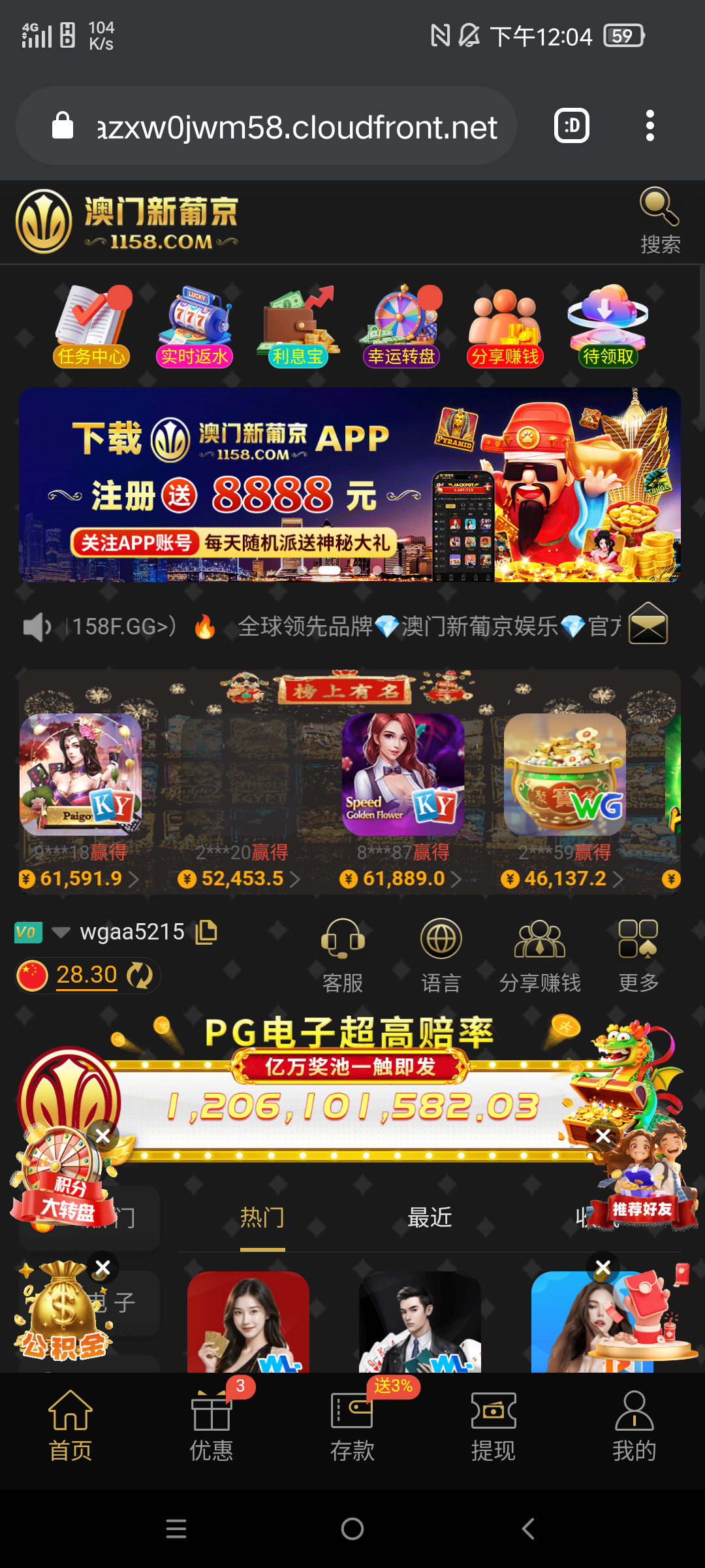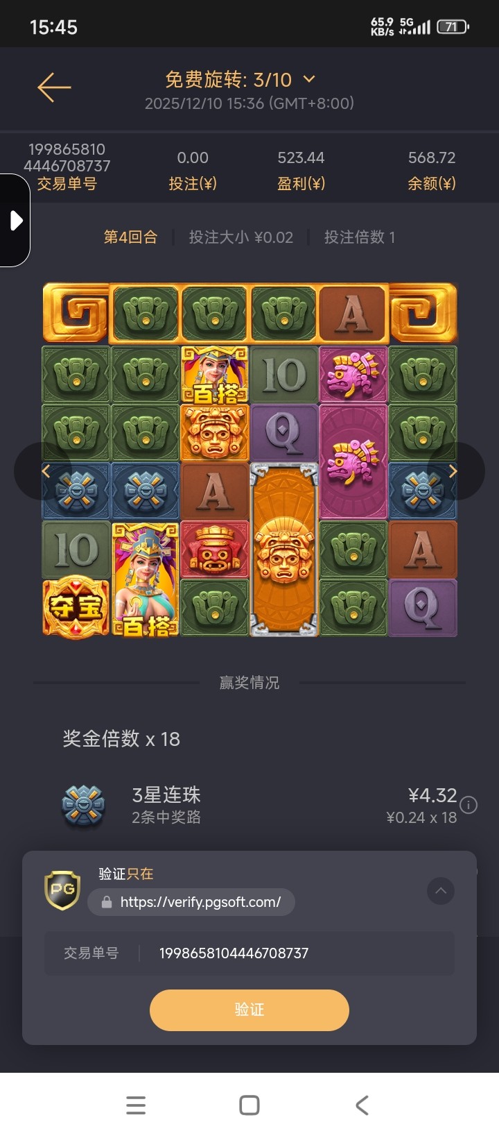 昨天在老哥网看见玩过了。剩30去买寻宝黄金城四毛,人生的第一次pg四毛千倍1445倍。这台子可以的不黑