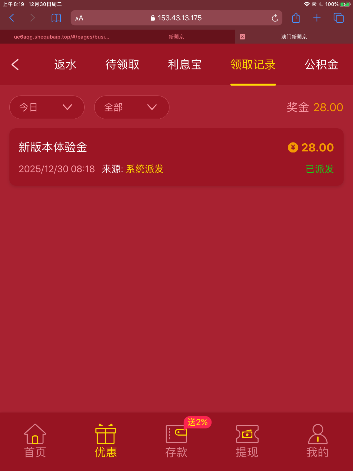 新葡京202更新版本彩金送28大部分都有,领到的助力下有效,谢谢