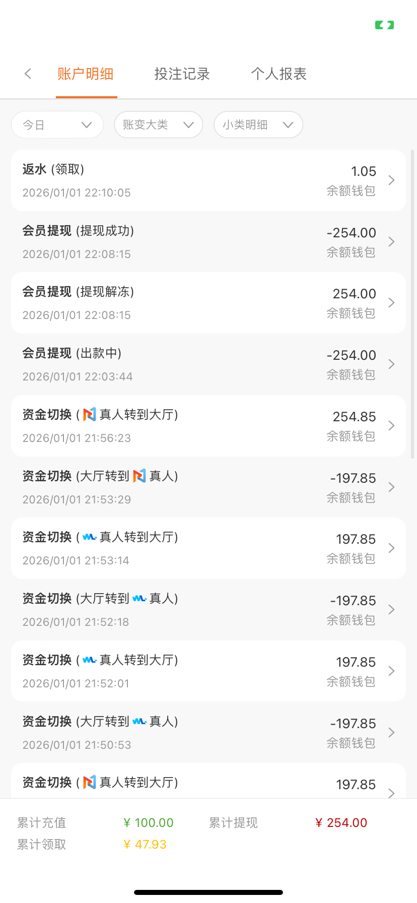 我充了40 提了108 到账