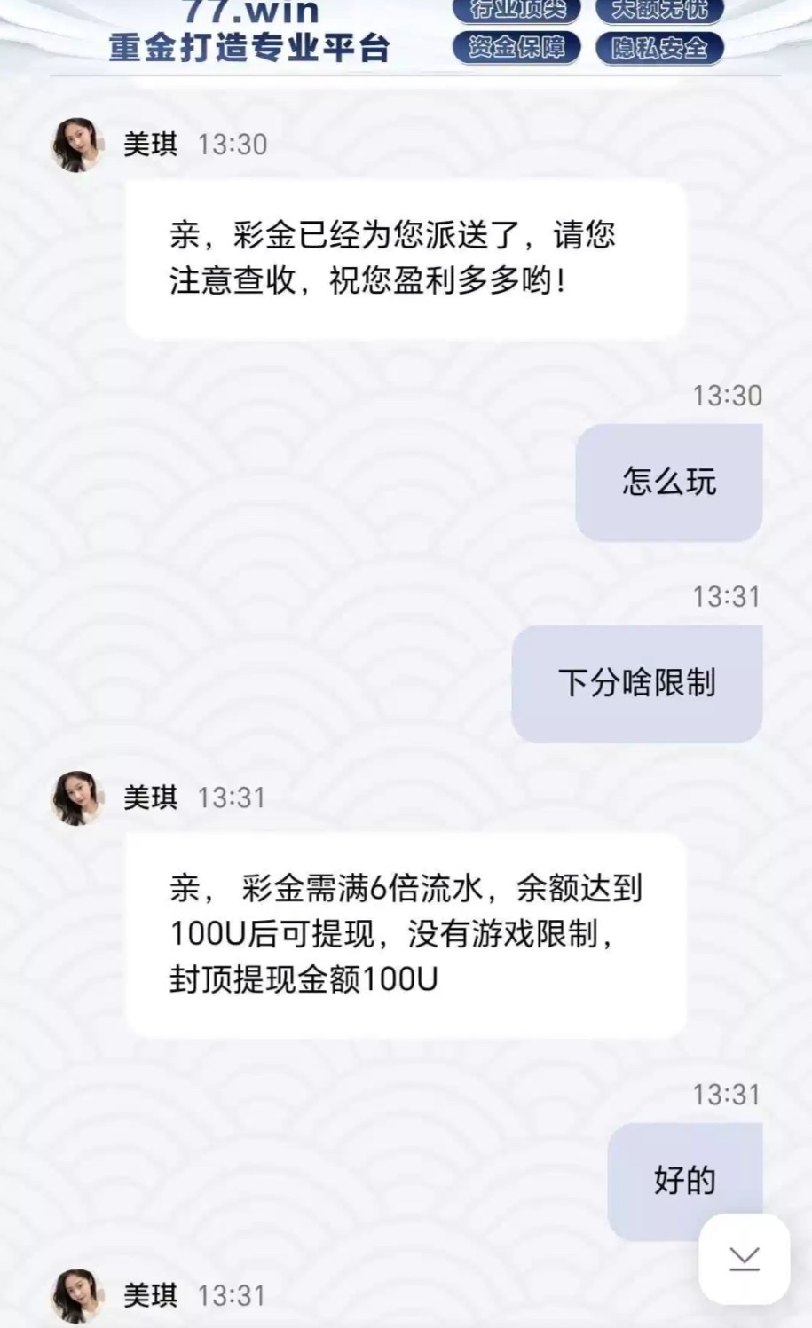 碰瓷大众彩送18.8u 注册绑定名字和u地址找客服申请链接77.win