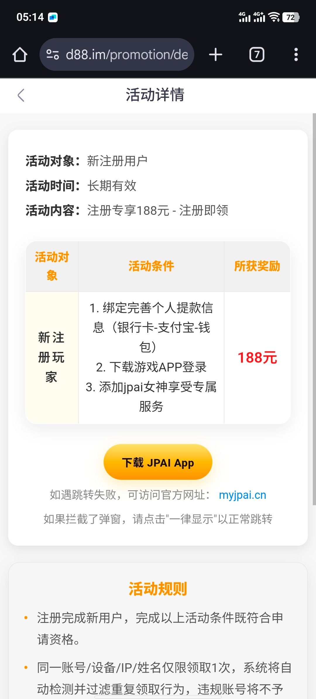 赠送188随机以内彩金送了我18