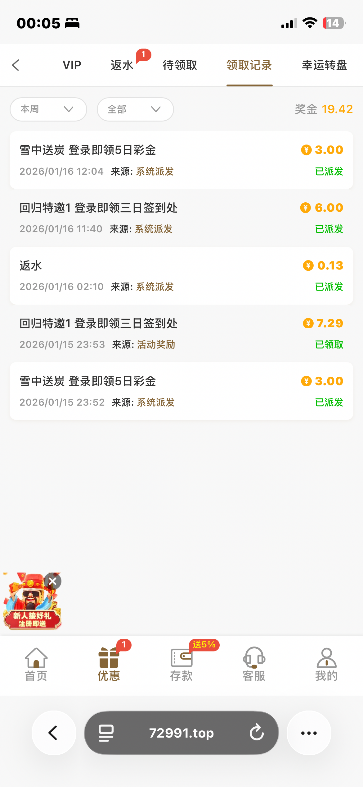 这个台半黑吧,我之前玩了多次,没提现过,前天的时候电话给我说回归彩金,我领了7块钱,拉麻一拉到161,提现到了,回冲50块钱,50块钱打到139,想着到150提现,结果后面一直输没了,总的来说送7块,提166秒到账回冲50输了,盈利110,反正一分没充