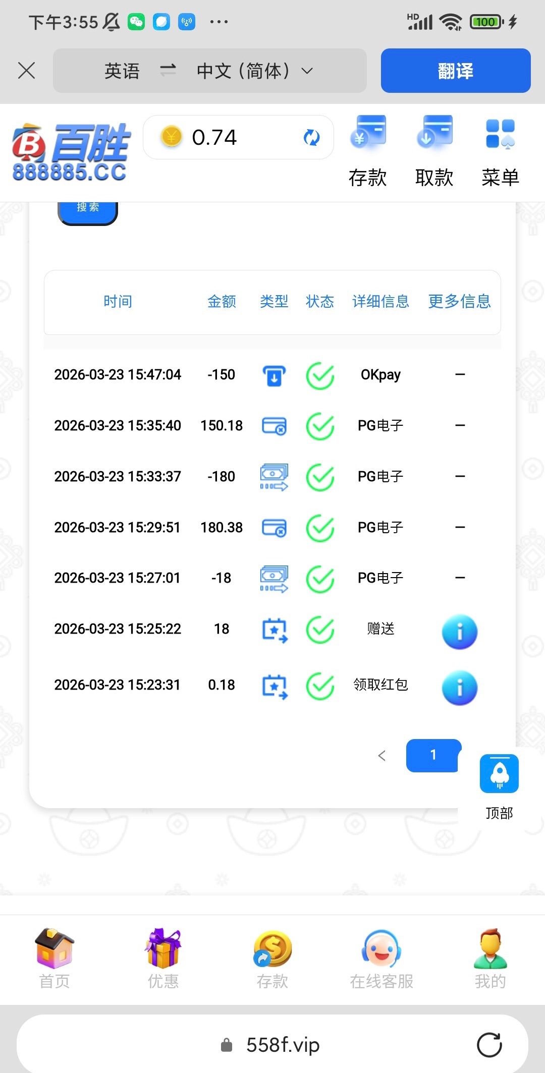 下午打的电话送了18,随便拉了两手进的免费,提了150,5分钟到的,这个流水是3倍,刷新有点慢。有老哥没有接到电话,可以试试。找客服说特邀彩金,给个手机号就送了。网址699880.cc