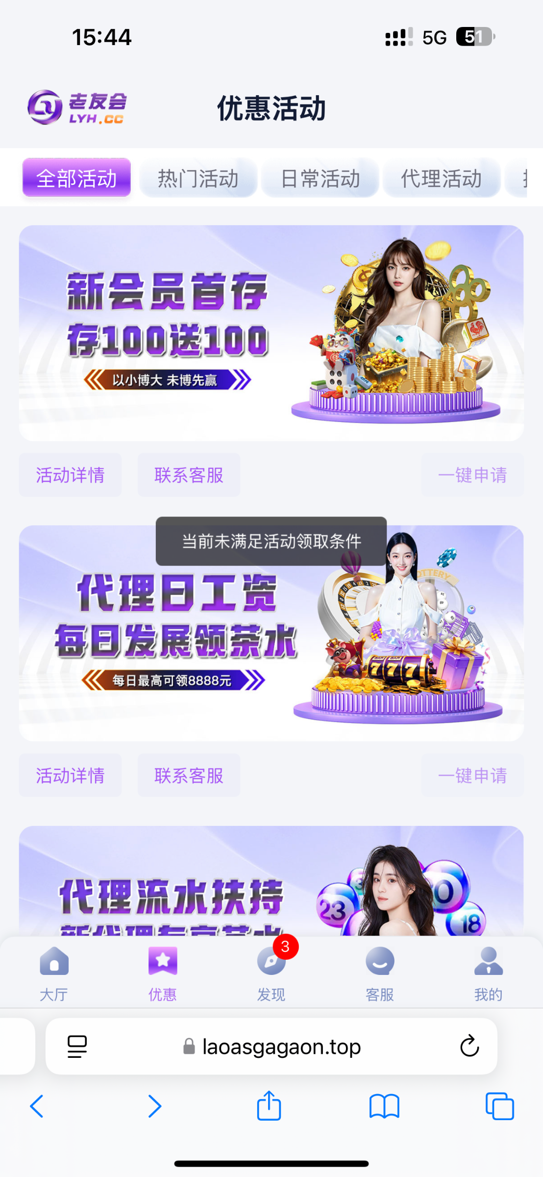 第一次在中100元激动得,整个晚上都在进去老友会,下载app就进能去一次彩金没到账,后面一直都在试图进,进不去,哈哈,哈哈,100的最后一舞没机会了吗