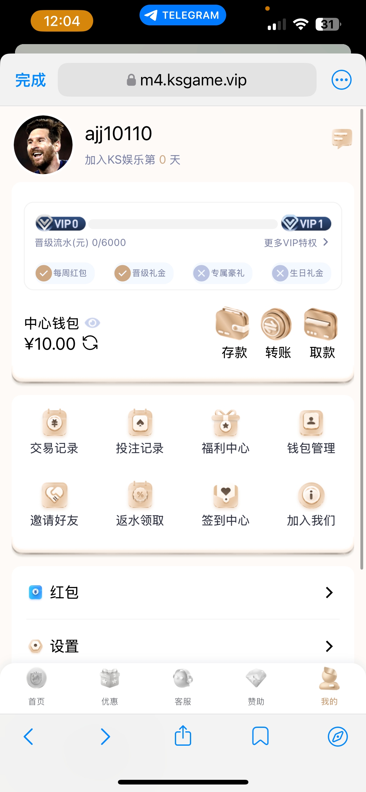 注册完成个人中心有个红包可以直接领取