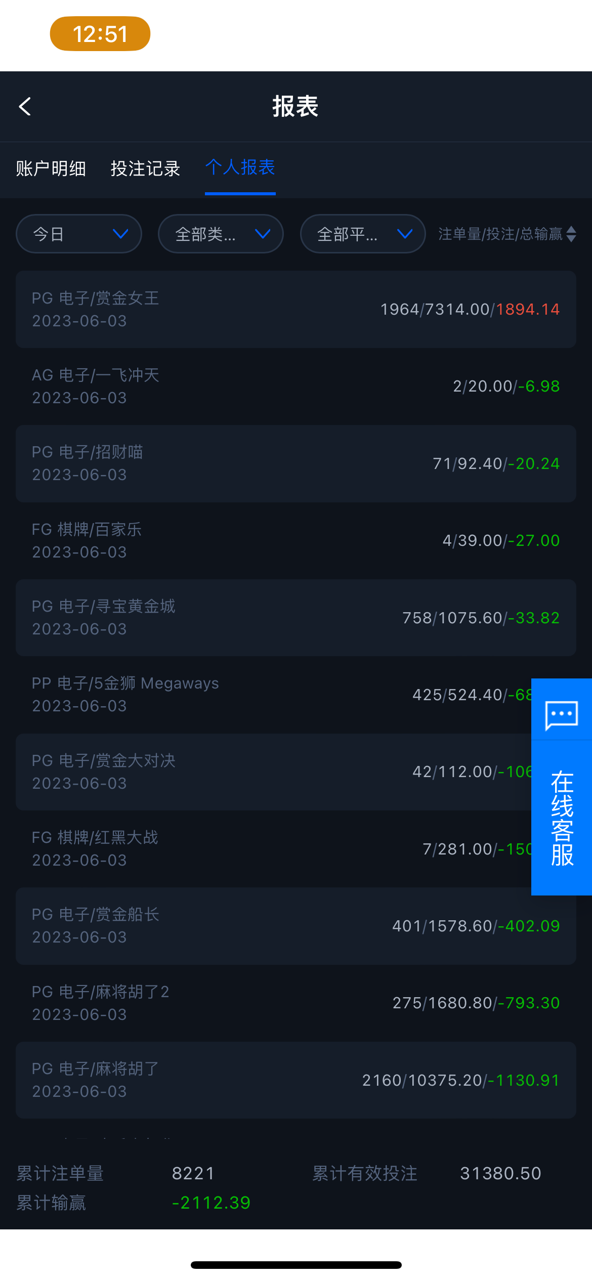 一样  前面大水  后面输了四五千块钱进去  不敢打了