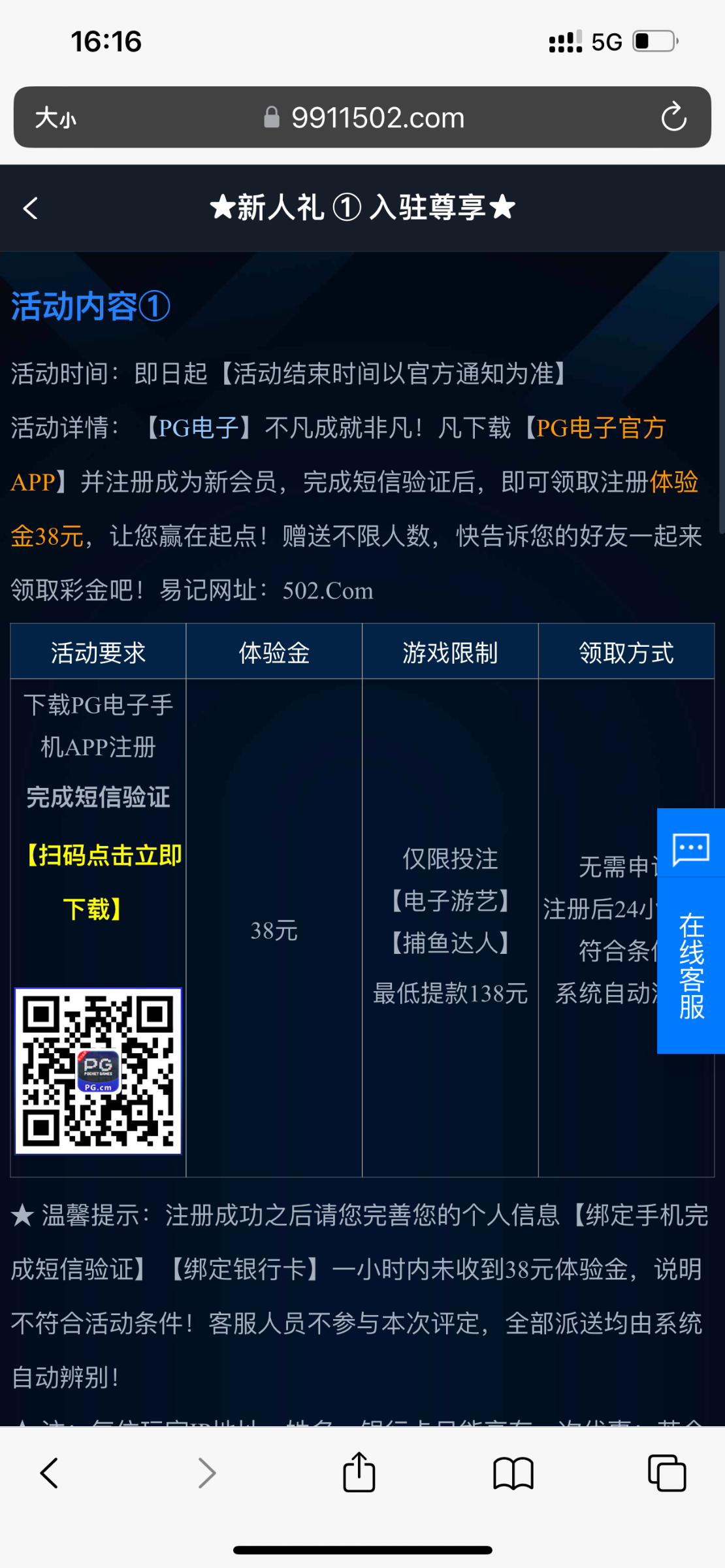 新用户注册下载完善资料一小时内送38,不送就是多IP。限制电子/捕鱼,最低138提。