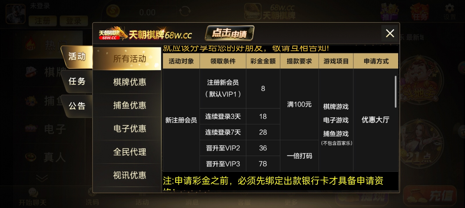 活动:新用户注册绑卡活动里自助申请特邀彩金送送18,100提,申请到的可连续申请10个
