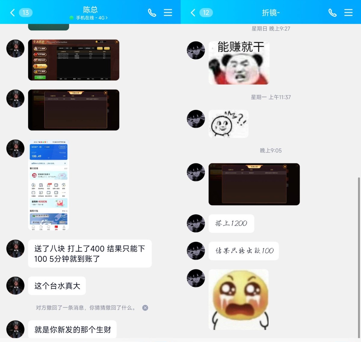 发你妈鸡吧烂白菜。 多少天前的截图。现在发你妈。 验证码收不到。 客服不回消息。 推你妈烂平台